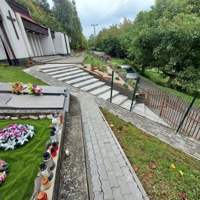 Položenie nových chodníkov v areáli cintorína a rekonštrukcia schodiska pred Domom smútku